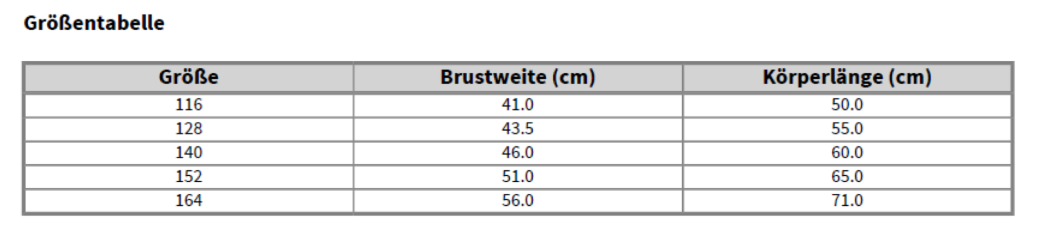 Hier geht's zu der Größentabellen: